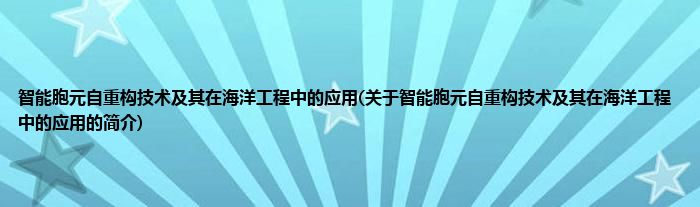 本文关于智能胞元自重构技术及其在海洋工程中的应用的简介就讲解完毕,希望对大家有所帮助。