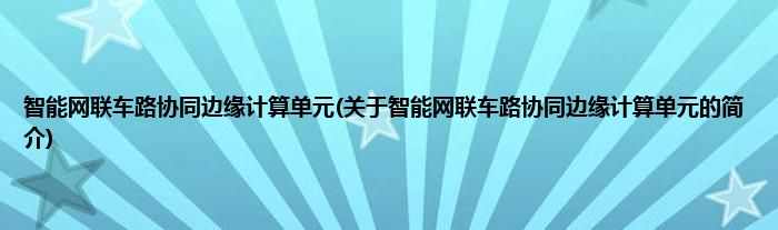 大家好,智能网联车路协同边缘计算单元,关于智能网联车路协同边缘计算单元的简介很多人还不知道,现在让我们一起来看看吧!