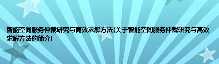 大家好,智能空间服务仲裁研究与高效求解方法,关于智能空间服务仲裁研究与高效求解方法的简介很多人还不知道,现在让我们一起来看看吧!