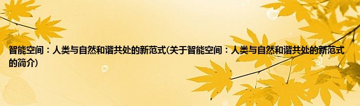 本文关于智能空间:人类与自然和谐共处的新范式的简介就讲解完毕,希望对大家有所帮助。