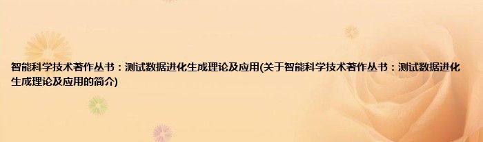 本文关于智能科学技术著作丛书:测试数据进化生成理论及应用的简介就讲解完毕,希望对大家有所帮助。