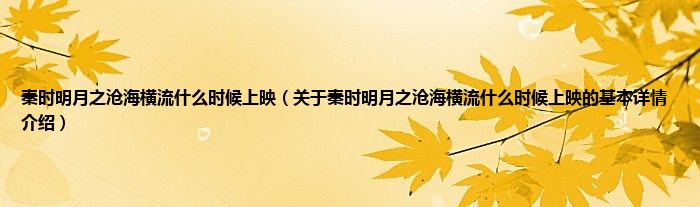 本文关于秦时明月之沧海横流什么时候上映的基本详情介绍就讲解完毕,希望对大家有所帮助。