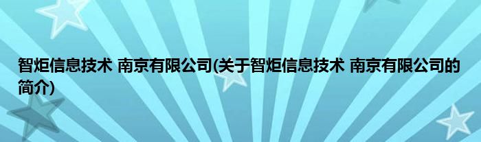 本文关于智炬信息技术 南京有限公司的简介就讲解完毕,希望对大家有所帮助。