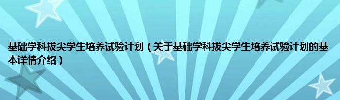 本文关于基础学科拔尖学生培养试验计划的基本详情介绍就讲解完毕,希望对大家有所帮助。
