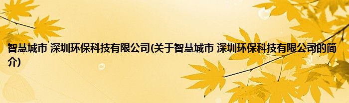 本文关于智慧城市 深圳环保科技有限公司的简介就讲解完毕,希望对大家有所帮助。