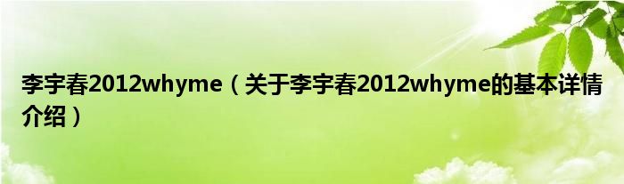 本文关于李宇春2012whyme的基本详情介绍就讲解完毕,希望对大家有所帮助。