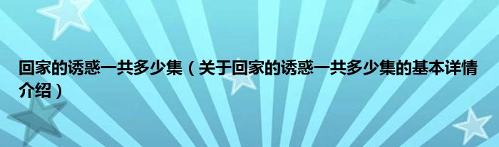 本文关于回家的诱惑一共多少集的基本详情介绍就讲解完毕,希望对大家有所帮助。
