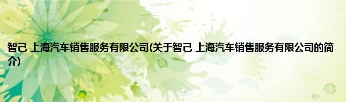 智己 上海汽车销售服务有限公司(关于智己 上海汽车销售服务有限公司的简介)