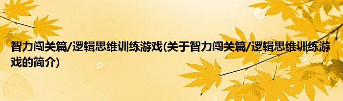 智力闯关篇/逻辑思维训练游戏(关于智力闯关篇/逻辑思维训练游戏的简介)