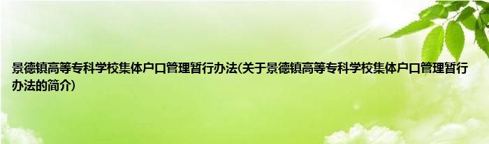 本文关于景德镇高等专科学校集体户口管理暂行办法的简介就讲解完毕,希望对大家有所帮助。