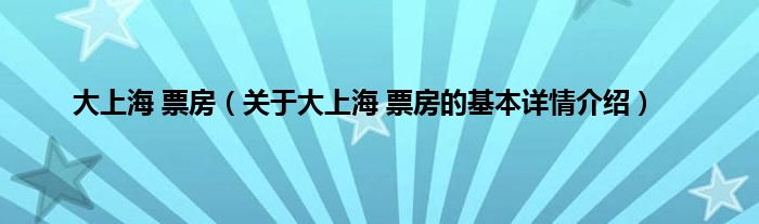 本文关于大上海 票房的基本详情介绍就讲解完毕,希望对大家有所帮助。