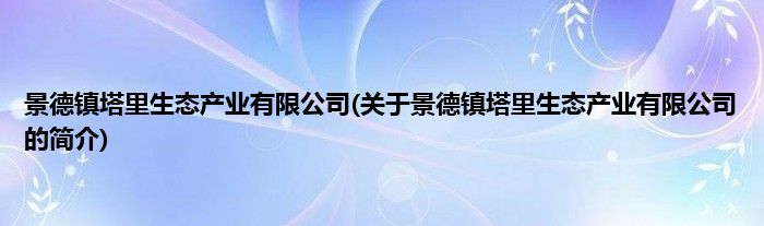 本文关于景德镇塔里生态产业有限公司的简介就讲解完毕,希望对大家有所帮助。
