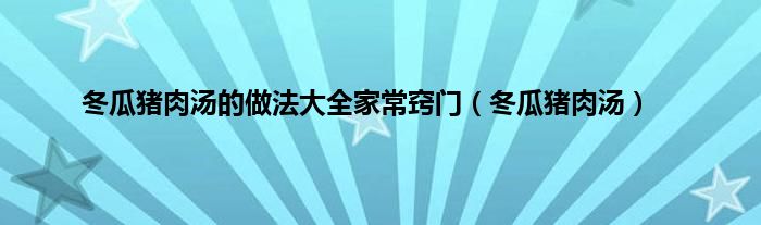 大家好,小问来为大家解答以上问题。冬瓜猪肉汤的做法大全家常窍门,冬瓜猪肉汤这个很多人还不知道,现在让我们一起来看看吧!