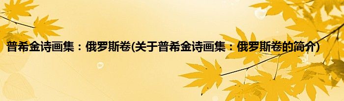 本文关于普希金诗画集:俄罗斯卷的简介就讲解完毕,希望对大家有所帮助。