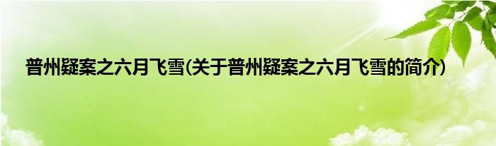 本文关于普州疑案之六月飞雪的简介就讲解完毕,希望对大家有所帮助。
