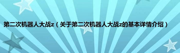 本文关于第二次机器人大战z的基本详情介绍就讲解完毕,希望对大家有所帮助。