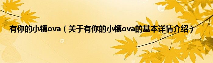 本文关于有你的小镇ova的基本详情介绍就讲解完毕,希望对大家有所帮助。