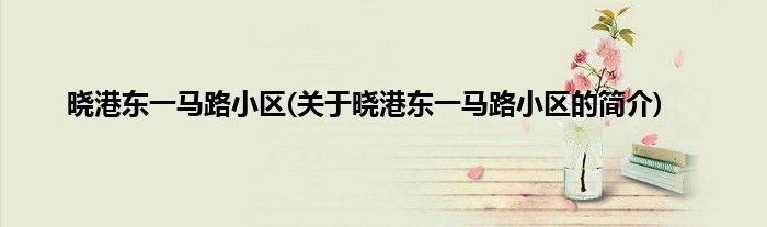 本文关于晓港东一马路小区的简介就讲解完毕,希望对大家有所帮助。