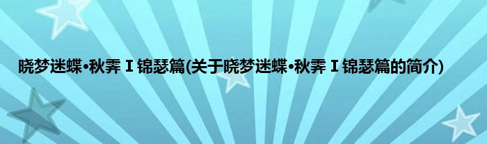 本文关于晓梦迷蝶·秋霁Ⅰ锦瑟篇的简介就讲解完毕,希望对大家有所帮助。