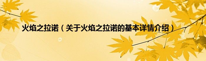本文关于火焰之拉诺的基本详情介绍就讲解完毕,希望对大家有所帮助。