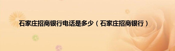 以上就是【石家庄招商银行电话是多少,石家庄招商银行】相关内容。