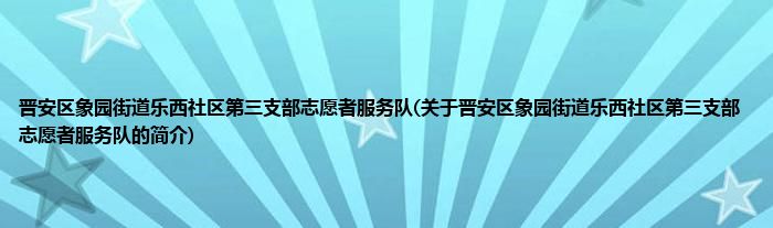 本文关于晋安区象园街道乐西社区第三支部志愿者服务队的简介就讲解完毕,希望对大家有所帮助。