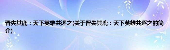 本文关于晋失其鹿:天下英雄共逐之的简介就讲解完毕,希望对大家有所帮助。