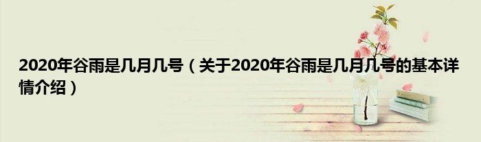 本文关于2020年谷雨是几月几号的基本详情介绍就讲解完毕,希望对大家有所帮助。