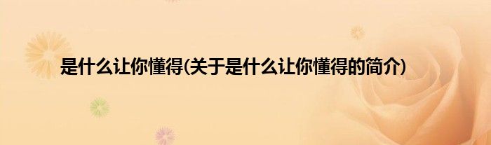 本文关于是什么让你懂得的简介就讲解完毕,希望对大家有所帮助。