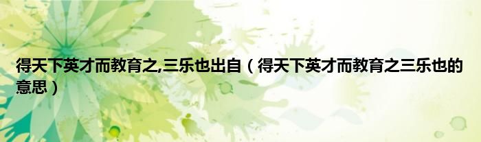 大家好,小问来为大家解答以上问题。得天下英才而教育之,三乐也出自,得天下英才而教育之三乐也的意思这个很多人还不知道,现在让我们一起来看看吧!