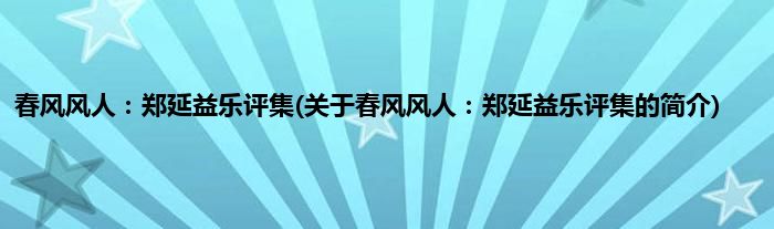 本文关于春风风人:郑延益乐评集的简介就讲解完毕,希望对大家有所帮助。