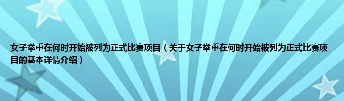 本文关于女子举重在何时开始被列为正式比赛项目的基本详情介绍就讲解完毕,希望对大家有所帮助。