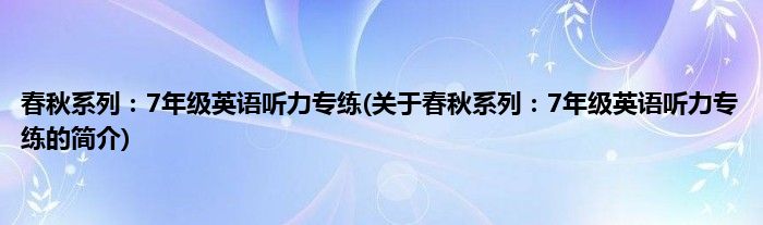 本文关于春秋系列:7年级英语听力专练的简介就讲解完毕,希望对大家有所帮助。