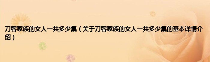 本文关于刀客家族的女人一共多少集的基本详情介绍就讲解完毕,希望对大家有所帮助。