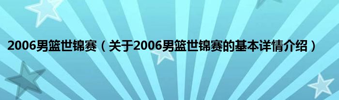 1、2006年世界男子篮球锦标赛是第15届的世界男子篮球锦标赛,从2006年的8月19日至9月3日在日本的滨松市、广岛市、埼玉市、札幌市及仙台市举行,当中。