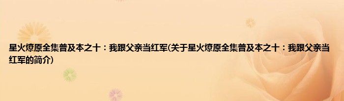 本文关于星火燎原全集普及本之十:我跟父亲当红军的简介就讲解完毕,希望对大家有所帮助。