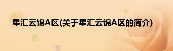 大家好,星汇云锦A区,关于星汇云锦A区的简介很多人还不知道,现在让我们一起来看看吧!