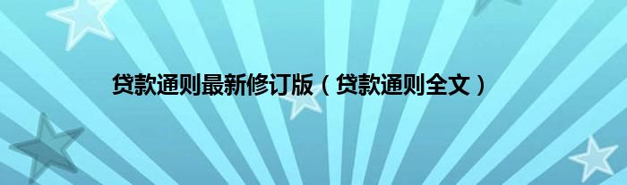 大家好,小问来为大家解答以上问题。贷款通则最新修订版,贷款通则全文这个很多人还不知道,现在让我们一起来看看吧!