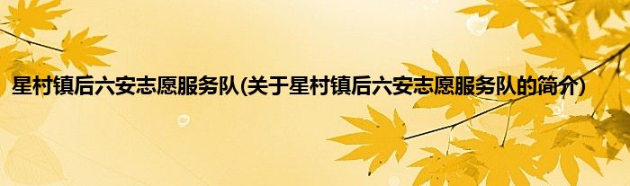 1、 星村镇后六安志愿服务队是由星村镇志愿服务队领导下的志愿团体。