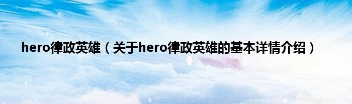 本文关于hero律政英雄的基本详情介绍就讲解完毕,希望对大家有所帮助。