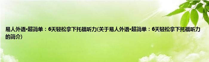 大家好,易人外语·超简单:6天轻松拿下托福听力,关于易人外语·超简单:6天轻松拿下托福听力的简介很多人还不知道,现在让我们一起来看看吧!