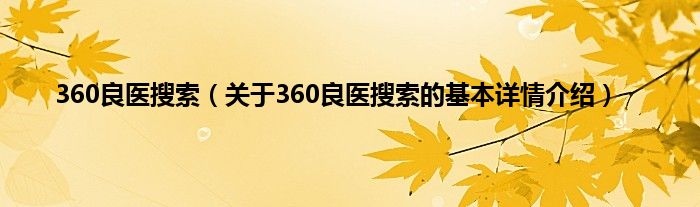 本文关于360良医搜索的基本详情介绍就讲解完毕,希望对大家有所帮助。
