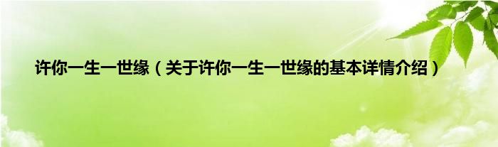 本文关于许你一生一世缘的基本详情介绍就讲解完毕,希望对大家有所帮助。