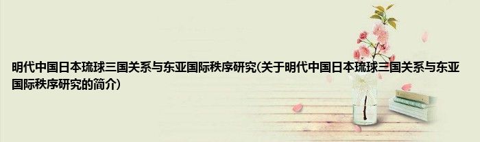 本文关于明代中国日本琉球三国关系与东亚国际秩序研究的简介就讲解完毕,希望对大家有所帮助。