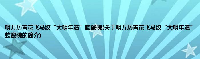 本文关于明万历青花飞马纹“大明年造”款瓷碗的简介就讲解完毕,希望对大家有所帮助。