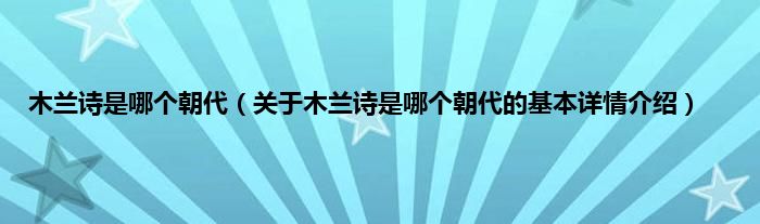 本文关于木兰诗是哪个朝代的基本详情介绍就讲解完毕,希望对大家有所帮助。