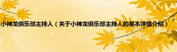 本文关于小神龙俱乐部主持人的基本详情介绍就讲解完毕,希望对大家有所帮助。