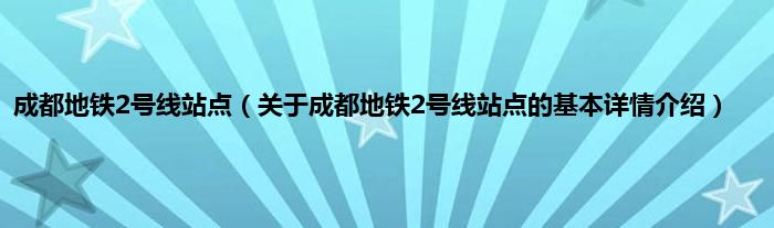 本文关于成都地铁2号线站点的基本详情介绍就讲解完毕,希望对大家有所帮助。