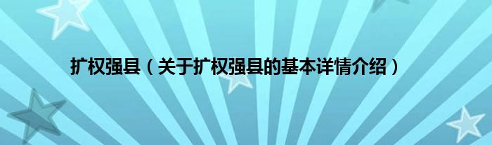 本文关于扩权强县的基本详情介绍就讲解完毕,希望对大家有所帮助。