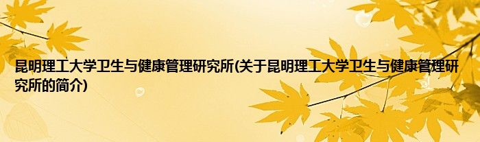 本文关于昆明理工大学卫生与健康管理研究所的简介就讲解完毕,希望对大家有所帮助。